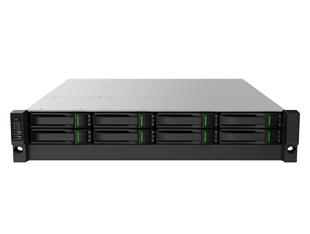 • 2U/8盘位,前置硬盘,集中存储、管理、解码、转发,最多可管理1000路通道